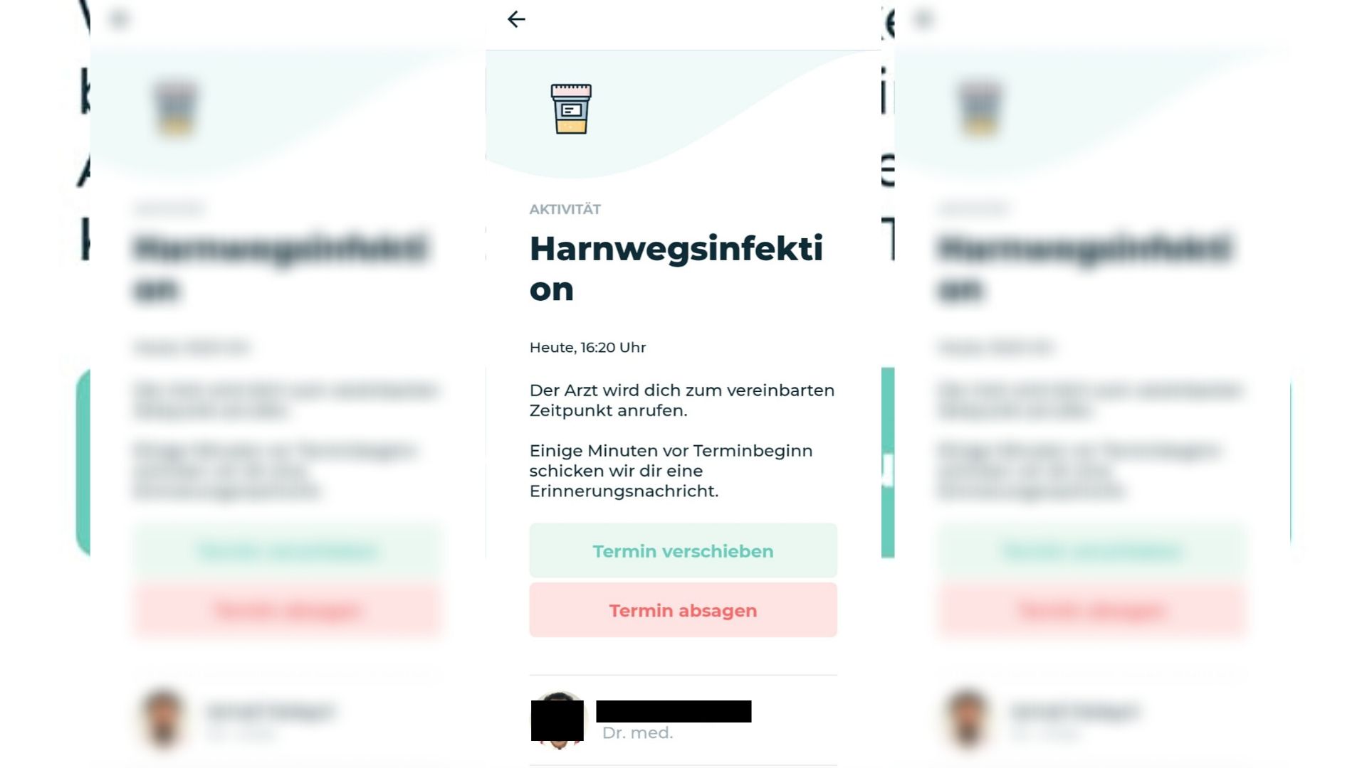 Die Bestätigung zeigt den Anlass für den Arzttermin, die erwarteten Kosten von 30 bis 51 Euro sowie den Namen des Arztes, der uns gleich anrufen soll: Ein Internist aus Berlin-Reinickendorf. Kurz vorher erhalten wir eine Bestätigung des Termins per SMS: Wir sollen uns bitte anmelden, der Arzt werde uns anrufen. Wir sollen uns auf das Gespräch vorbereiten und sicherstellen, dass wir eine gute Internetverbindung haben, der Akku aufgeladen ist und Benachrichtigungen aktiviert sind.