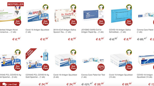 Ob Shop Apotheke, Aponeo, Apo-Discounter oder auch Mycare: Bei den meisten Versandapotheken rangieren Corona-Schnelltests für Laien derzeit ganz oben im Sortiment. Gut platziert und mit großzügigen Rabatten wird auf das Angebot aufmerksam gemacht. „Ihr Corona-Schnelltest für Zuhause: Wir liefern umgehend & zuverlässig“, heißt es etwa ganz oben auf der Startseite von Apo-Discounter.