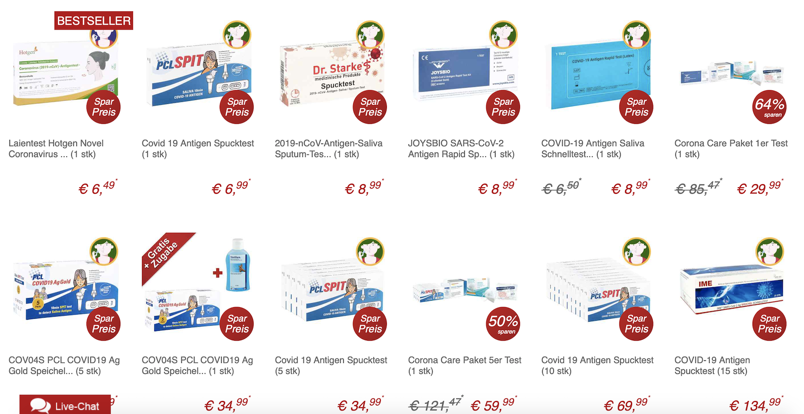 Die anderen großen Versender hatten frühzeitig entsprechende Produkte aufgenommen – teilweise waren sie schon im Webshop zu finden, bevor sie überhaupt für die Anwendung durch Laien zugelassen waren. Die Einschränkung, dass eine Abgabe nur an Fachpersonal möglich sei, wurde mitunter nicht so genau genommen.