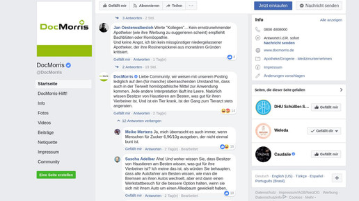 DocMorris preist auf Facebook Homöopathie für Tiere an. Die Nutzer finden das gar nicht gut und bombardieren die Versandapotheke mit negativen Kommentaren.