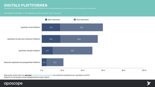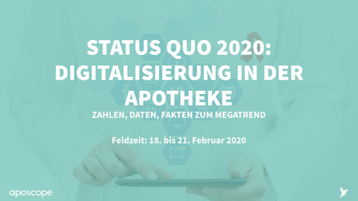 Für „Status Quo 2020: Digitalisierung in der Apotheke“ wurden vom 18. bis 21. Februar insgesamt 514 verifizierte Apotheker und PTA online befragt. Die Beantwortung des Online-Fragebogens dauerte im Durchschnitt 19 Minuten. Die Studie liefert umfangreiche Antworten auf mehr als 50 Fragen und kann ab sofort hier bestellt werden. aposcope bietet Online-Marktforschung im Apotheken- und Pharmamarkt und liefert zielgenaue Marktforschungsergebnisse innerhalb weniger Stunden. Das Panel besteht aus mehr als 2100 verifizierten Apothekern und PTA.
