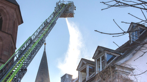 Um 16.39 Uhr war das Feuer unter Kontrolle. Nach Beendigung der Löscharbeiten kontrollierte die Feuerwehr das Haus noch bis in den späten Abend hinein. Mit einer Riegelstellung verhinderten die Einsatzkräfte ein Übergreifen der Flammen auf die benachbarte evangelische Stiftskirche. Ein Fenster ging als Folge der Hitze zu Bruch, ins Kirchenschiff lief eine geringe Menge Löschwasser.