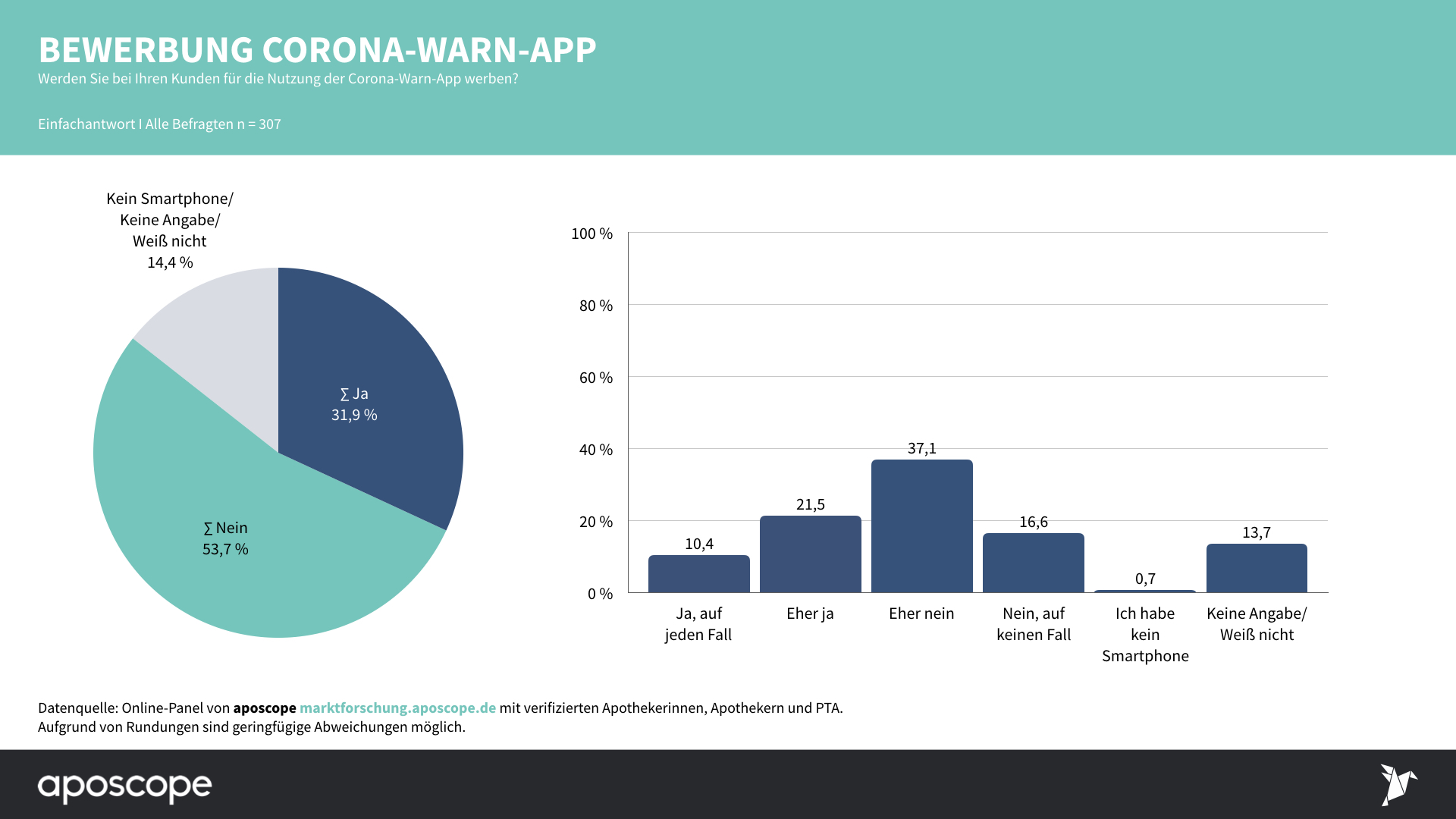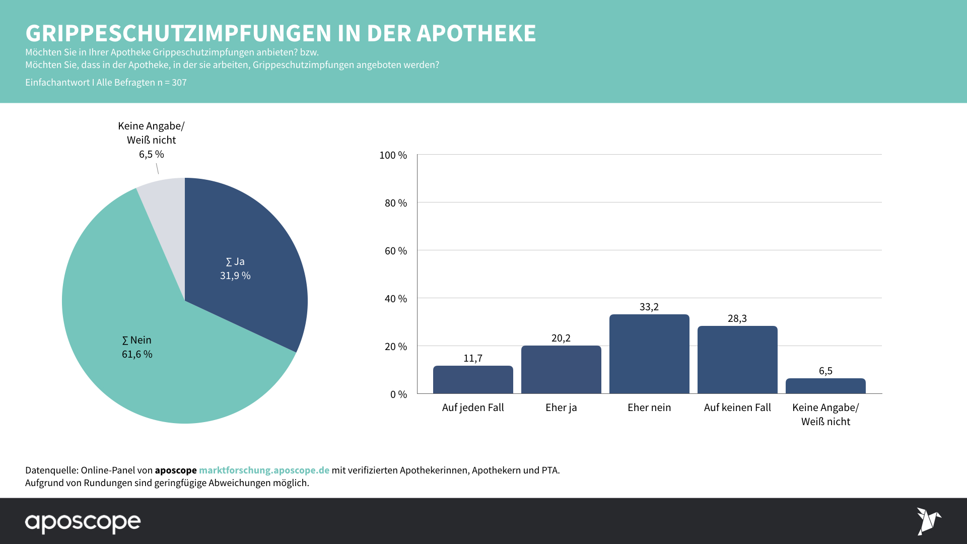 An der aposcope-Umfrage nahmen am 17. Juni 307 Apotheker und PTA teil. Die Umfrage ist repräsentativ für die deutsche Apothekenlandschaft.