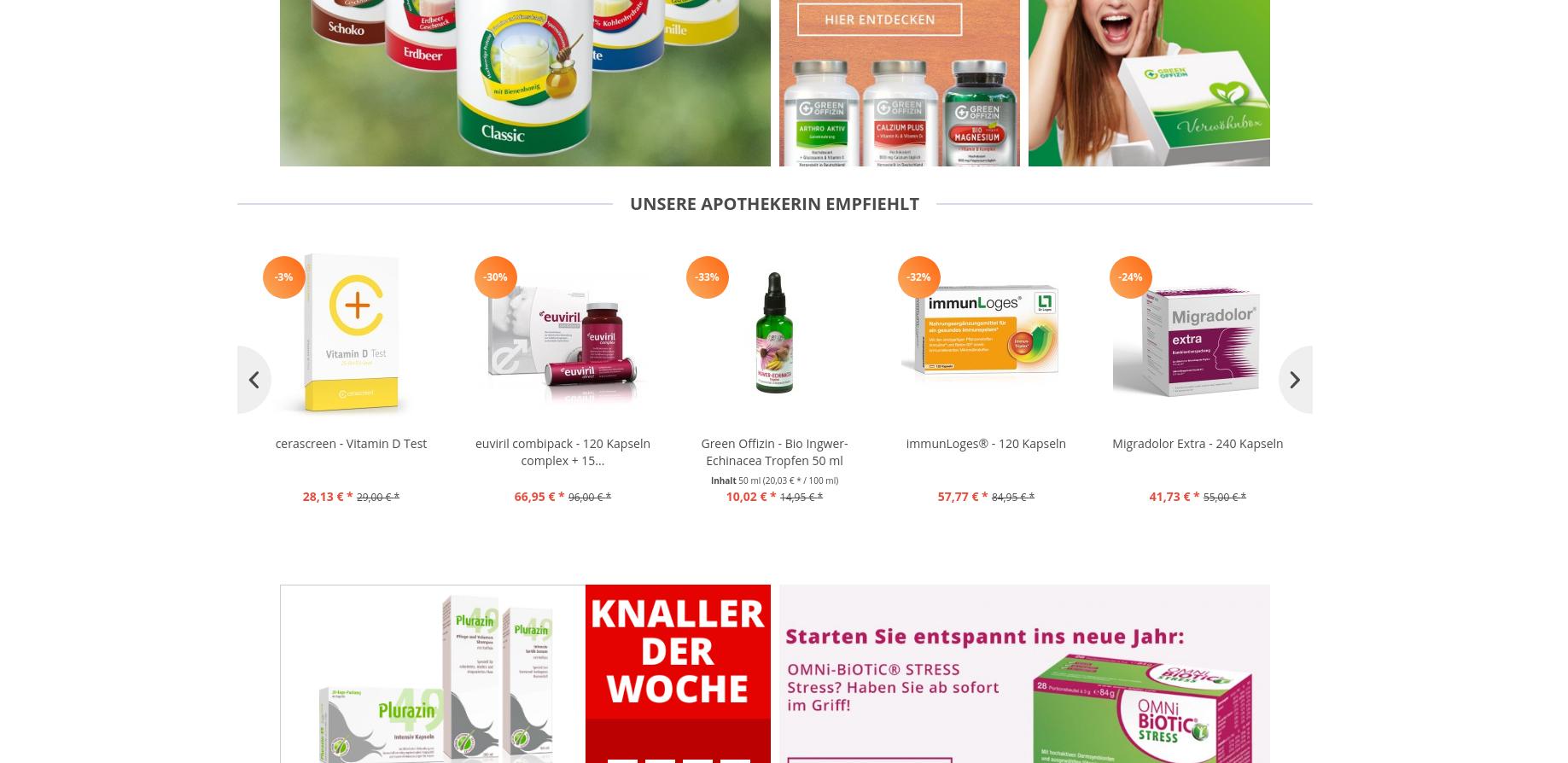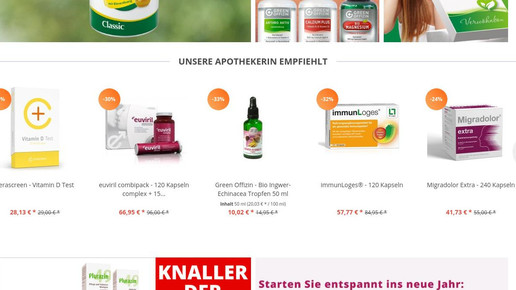 „Natürlich gesund bleiben“ ist das Motto der nach eigenen Angaben auf Naturheilkunde, OTC, Nahrungsergänzungsmittel und Medizinprodukte spezialisierten Versandapotheke. Große Marken sucht man fast vergeblich. Zu finden sind etwa die Abnehmmittel von Yokebe (Naturwohl) und Almased. Von Certmedica gibt es Formoline als Eiweißpulver und Tabletten sowie die Vitalmahlzeit Balancia.