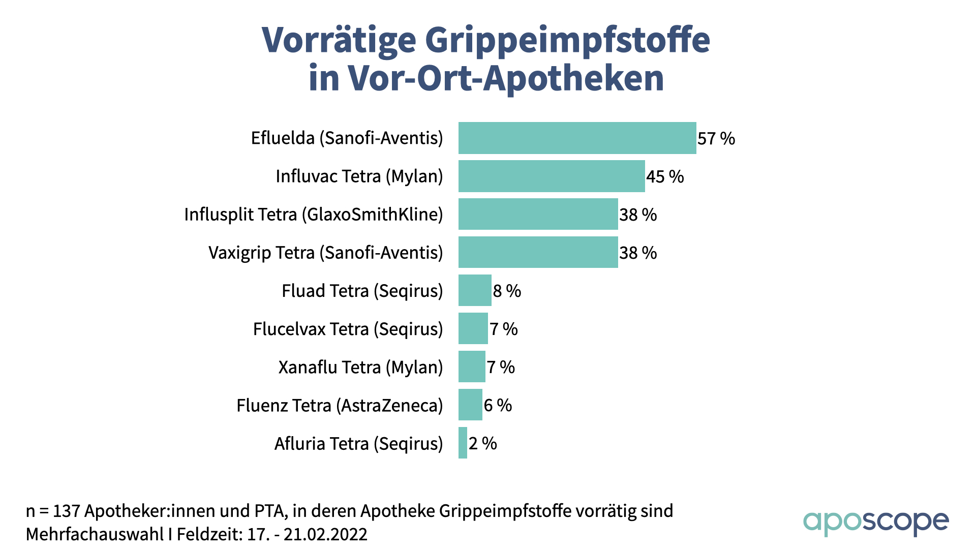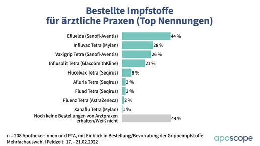 An der aposcope-Befragung nahmen vom 17. bis 21. Februar 2022 insgesamt 208 verifizierte Apotheker:innen und PTA teil, die mindestens einen guten Einblick in die Bevorratung und Bestellung von Grippeimpfstoffen in ihrer Apotheke haben.