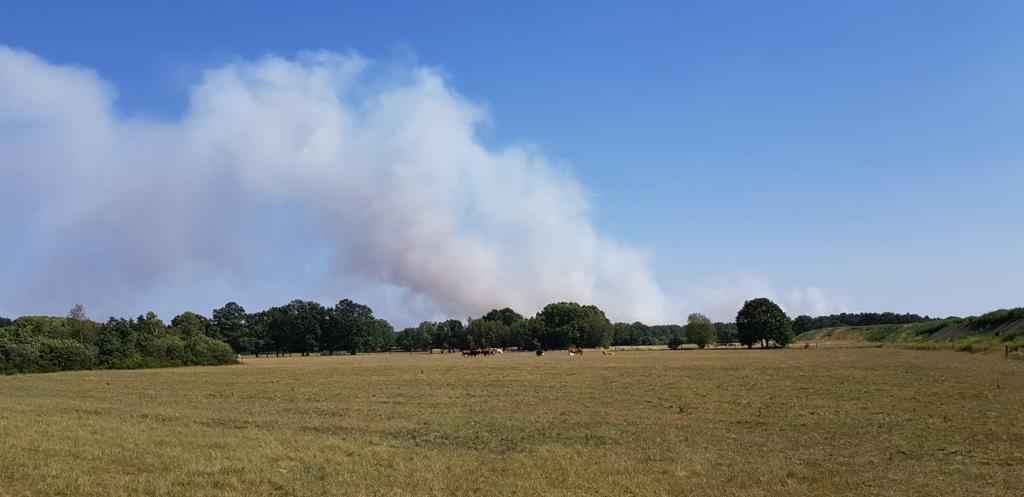 Ein Löschen des immensen Brandes sei nicht möglich, nur eine Eindämmung. Da es sich bei dem Gebiet um eine munitionsbelastete Fläche handelt, besteht für alle Einsatzkräfte ein Sicherheitsabstand von 1000 Metern. Bei dem Feuer soll es sich um Brandstiftung handeln. Der Kriminaldauerdienst hat die Ermittlungen aufgenommen.