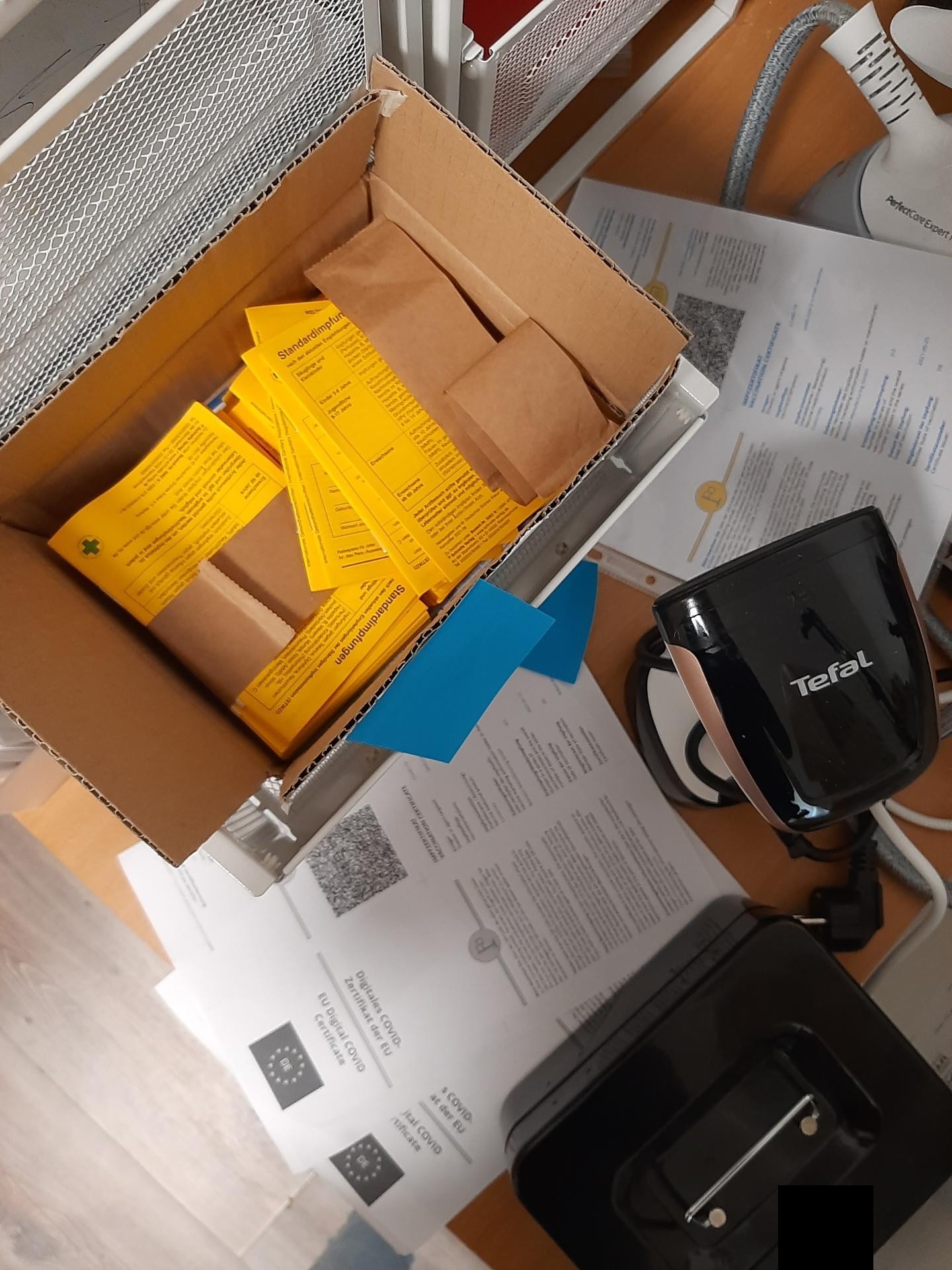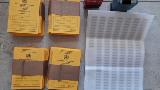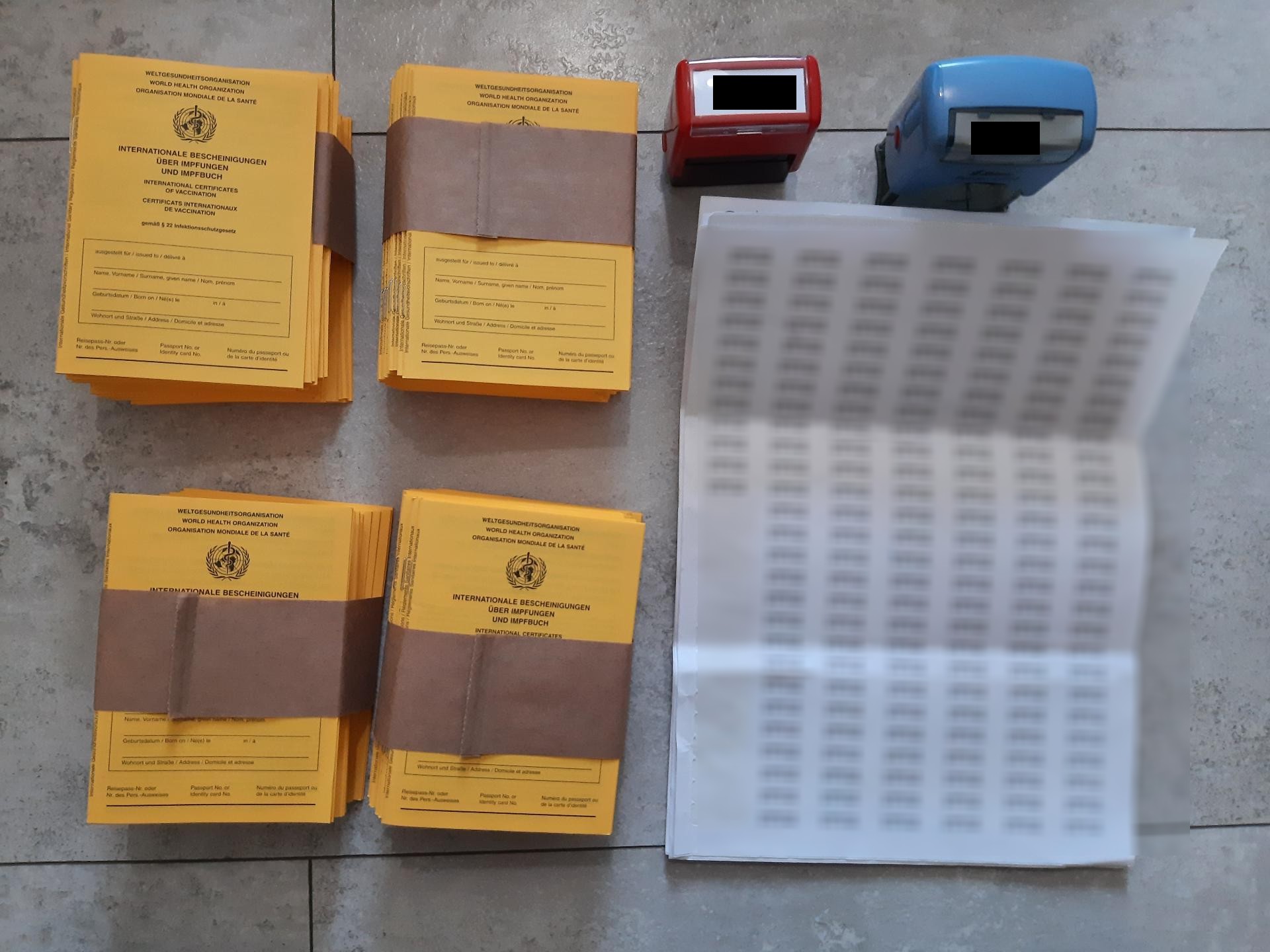 Bei den Durchsuchungsmaßnahmen wurde umfangreiches Beweismaterial wie 300 Impfbücher, circa 1000 Chargenetiketten, zehn falsche Arztstempel, Datenträger und Mobiltelefone sichergestellt. Zudem wurden bisher insgesamt 45.000 Euro Bargeld sowie Sachwerte wie hochwertige Armbanduhren in Höhe von 15.000 Euro gepfändet. Außerdem wurden bei einem Beschuldigten gefährliche Gegenstände und verbotene Waffen, wie verschiedene Messer und ein Schlagring gefunden.
