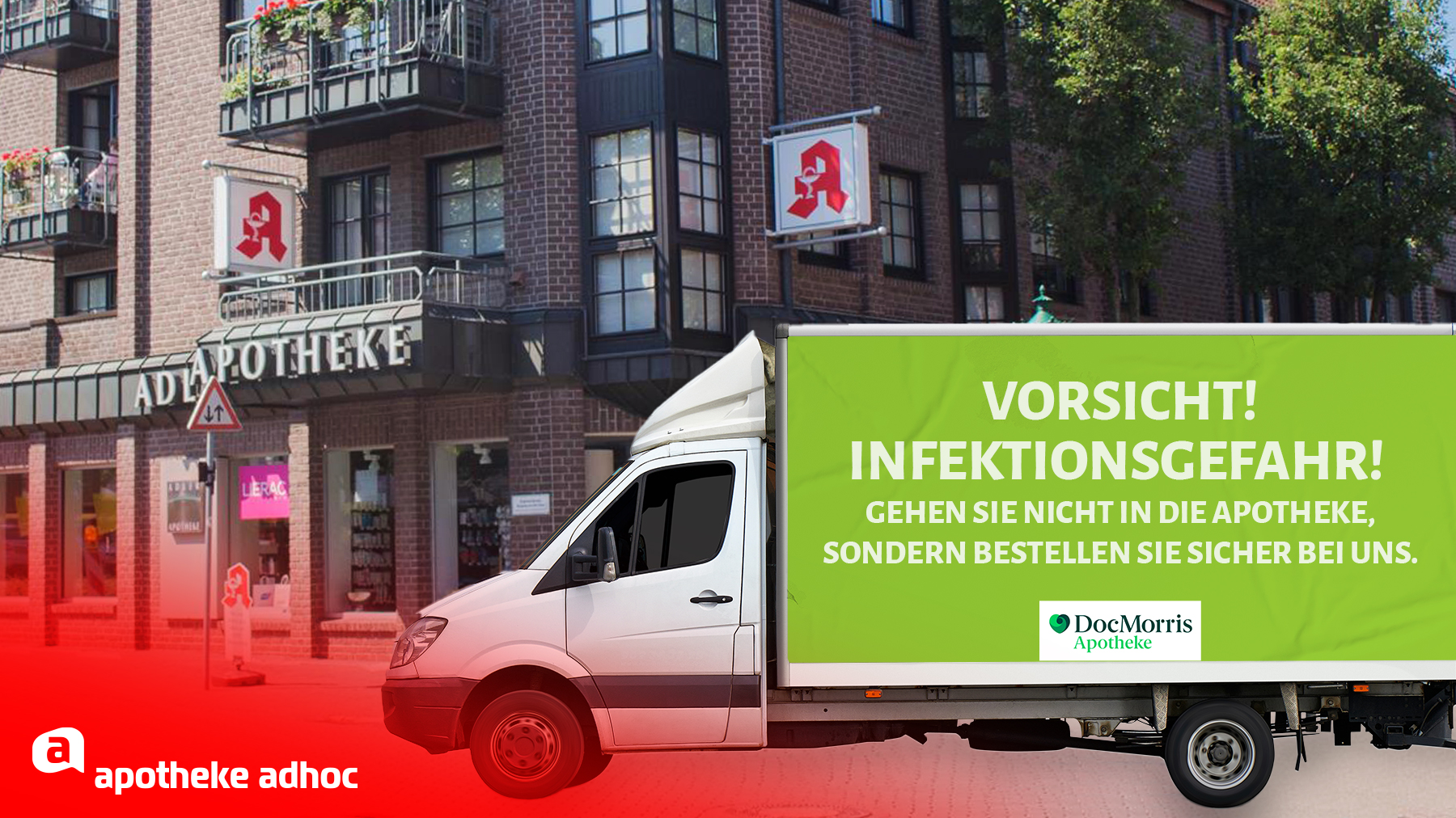 Zeit haben sie ja, also erlauben sie sich einen Blick – und können es nicht fassen! Da hat der Transporter doch tatsächlich auf der abgewandten Seite einen riesigen LED-Screen! Coole Technik eigentlich, aber was draufsteht: „Vorsicht! Infektionsgefahr! Gehen Sie nicht in die Apotheke, sondern bestellen Sie sicher bei uns. DocMorris.“ Doch wo ist der Fahrer? „Wie kriegen wir diese verfluchte Karre hier weg?“, entfährt es ihr, als ihr Handy klingelt. Kollegin Alev ist dran, die Filialleiterin ihrer zweiten Apotheke. „Du wirst es nicht glauben, aber hier steht…“, sagt sie und wird von Irina unterbrochen: „… ein Transporter vor der Apotheke, der die Kunden vor uns warnt.“ Also ruft sie direkt Michael an, den Filialleiter ihrer dritten Apotheke. „Micha, wie läuft’s bei euch?“, fragt sie ihn. „Ach, es geht, heute ist recht wenig los.“ Und auch er bestätigt: Vor der Apotheke steht ein Transporter mit DocMorris-Werbung. „Risikokontakt Apotheker: Nur wir ermöglichen echte Quarantäne!“, steht darauf.