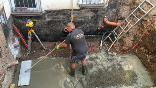 Doch Mutter Erde hält bekanntlich so manche Überraschung bereit. Beim Ausschachten stießen Grittmann und die Bauarbeiter auf ein Wasserrohr, von dem sie vorher nichts geahnt hatten. Entsprechend wussten sie auch nicht, wo es hinführt. Da im selben Haus aber mehrere Praxen sind, hat er direkt selbst Hand angelegt. „Wir haben das Rohr aufgeschnitten. Dann bin ich oben durch die Praxen gegangen und hab da alle Klospülungen, Waschbecken und so weiter bedient, um zu schauen, ob irgendwo kein Wasser mehr kommt.“ Am Ende war es ein Spülbecken beim Kieferorthopäden – Glück gehabt. Ein ausgefallenes Spülbecken ist für einen Tage durchaus zu verkraften. „Wir haben das Rohr dann innerhalb eines Tages großflächig umgelegt, da war das Problem auch schon gelöst.“