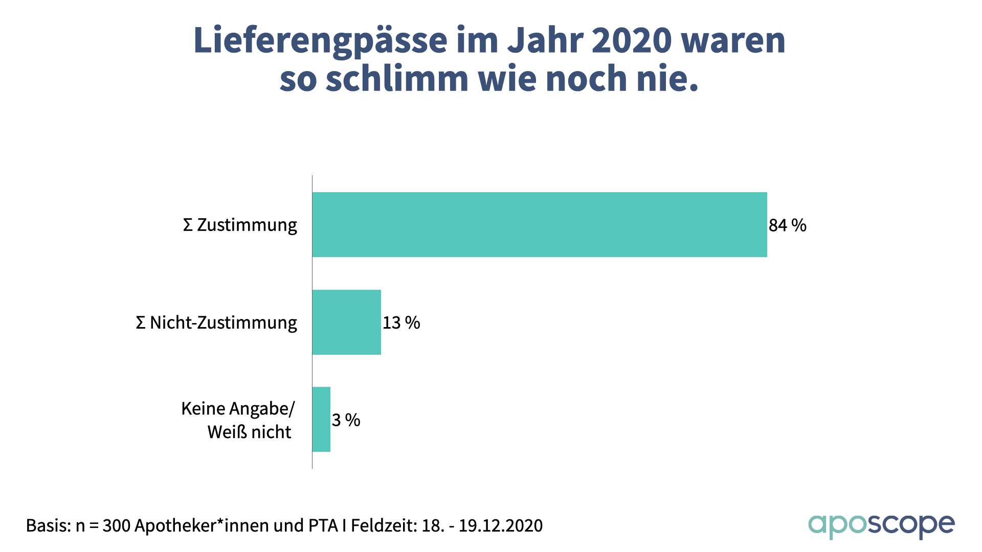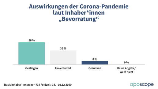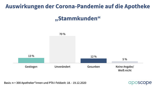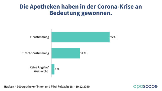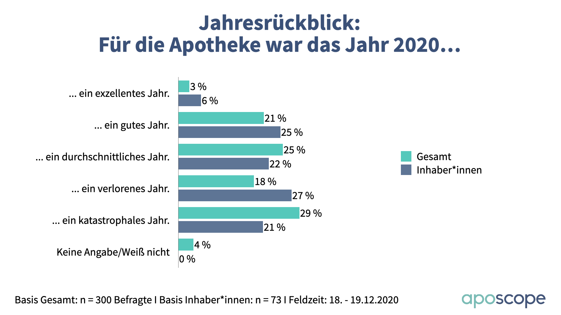 An der aposcope-Befragung nahmen am 18. Und 19. Dezember 2020 insgesamt 300 verifizierte Apothekeninhaber, Filialleiter, angestellte Approbierte und PTA teil.