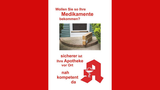 Der Apotheker hat noch weitere Plakate erstellt, in dem er auf die Nachteile und Gefahren des Versandhandels hinweist. Auf einem Poster etwa ist ein Paket zusehen, das im Freien vor einer geschlossenen Tür liegt. „Wollen Sie so Ihre Medikamente bekommen?“, steht darüber. Sicherer sei die Apotheke vor Ort – nah, kompetent, da. Arzneimittel seien eine besondere Ware und sollten nicht in falsche Hände geraten, schrieb der Apotheker dazu bei Facebook.
