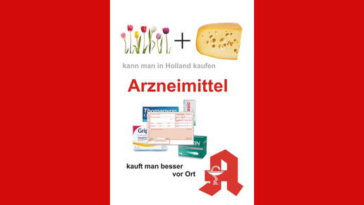 Mit einem weiteren Poster kritisiert er die Holland-Versender. Das Motiv zeigt oben Tulpen und Käse. Darunter steht: „Kann man in Holland kaufen. Arzneimittel kauft man besser vor Ort.“ Die Plakate des hessischen Apothekers werden auch von Kollegen genutzt: Mehrere Apotheken zeigten beispielsweise zuletzt ein abgewandeltes DocMorris-Plakat zum E-Rezept. Auf rotem statt grünem Hintergrund präsentierte er das abgeänderte DocMorris-Plakat zum E-Rezept.