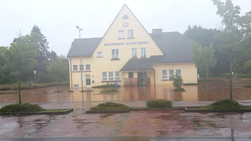 Ein gewaltiges Unwetter verwandelte in Nullkommanix ein kleines Gewässer in einen reißenden Strom. Das Haus der Brunnen-Apotheke im saarländischen Heusweiler muss umfassend saniert werden, der Schaden ist immens.