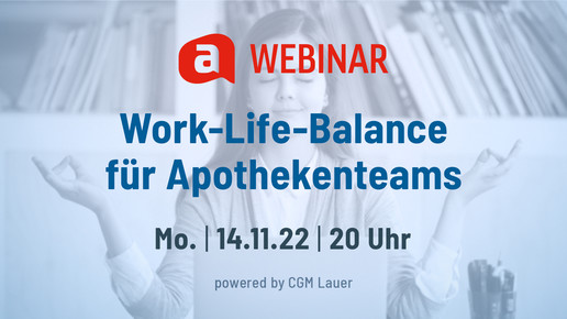 Am Montag, dem 14. November 2022, um 20 Uhr, können sich Apothekenteams im APOTHEKE ADHOC WEBINAR „Work-Life-Balance“ informieren und erfahren, ob und für wen Homeoffice attraktiv sein kann. Im Webinar erläutern Experten wie Dr.Juliane Kresser, Referentin der Geschäftsführung, CGM Lauer und Ralph Laves, welche Chancen Homeoffice für Apothekenteams bieten kann. Und wie Inhaber:innen zu dieser Möglichkeit stehen. Die Expert:innen zeigen, dass auch mit der Apotheke als Arbeitgeber moderne und hybride Strukturen umsetzbar sind.