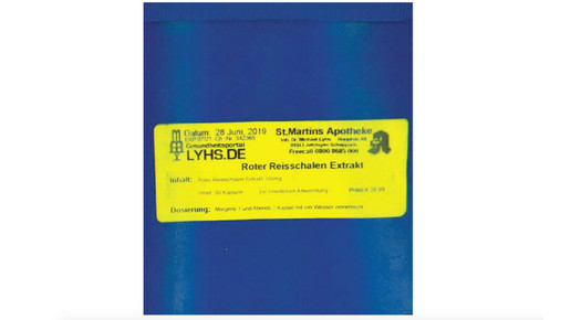 Das Landratsamt Günzburg, so der Aushang im Schaufenster der Apotheke, warne „aus Gründen des vorbeugenden Verbraucherschutzes eindringlich vor der Einnahme folgender Defekturarzneimittel“: Procain und Roter Reisschalenextrakt. Mit beiden Ausgangsstoffen hatte Lyhs in seiner Apotheke Präparate hergestellt und als Nahrungsergänzungsmittel vertrieben. Ab hier gehen die Versionen der Geschichte auseinander: Laut Polizei hat er nicht als solche deklarierte Defekturarzneimittel hergestellt und sowohl über seine St.Martins-Apotheke in Jettingen-Scheppach, deren Filiale, die von seiner Frau geführten Rathaus-Apotheke im selben Ort, und die von seinem Schwager betriebene Stauden-Apotheke in Langenneufnach vertrieben. Auch über den Online-Shop seiner Apotheke habe er die Produkte verkauft.