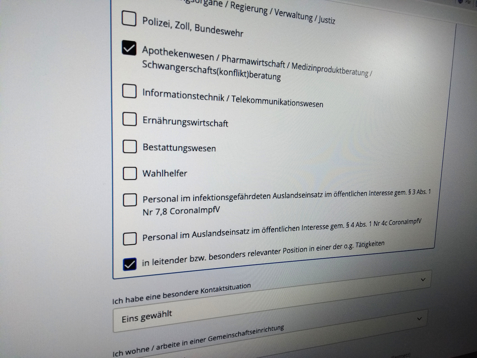 Das Feld „in leitender bzw. besonders relevanter Position“ dürfe nur angekreuzt werden, sofern dies der Richtigkeit entspreche, betont die Sprecherin. Die Arbeitgeber müssen diese Eigenschaft ihrer Mitarbeiter gegenüber dem Impfzentrum, dem mobilen Impfteam oder der beauftragten Arztpraxis bescheinigen. Eine Leitungsposition dürfte problemlos bestätigt werden können.