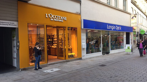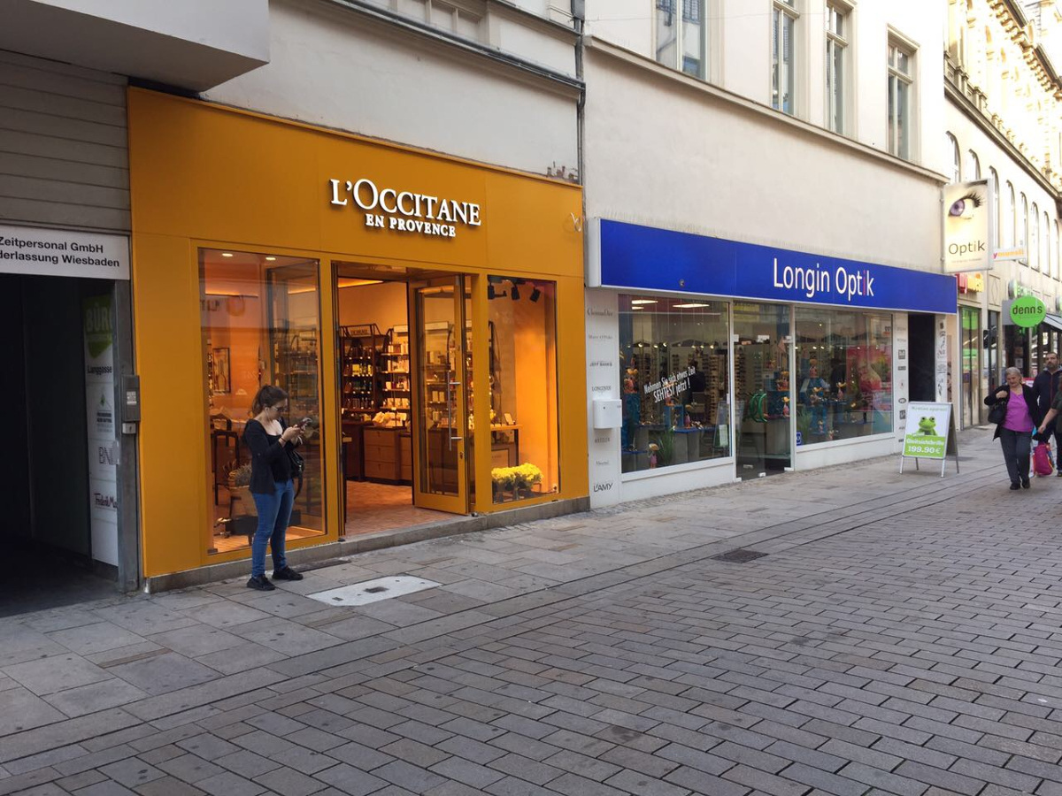 Viele deutsche Innenstädte sind inzwischen fest in der Hand von Ketten: Zara, New Yorker und H&M prägen auch die Fußgängerzone von Wiesbaden. Nur noch wenige inhabergeführte Geschäfte schaffen es, sich in der 1A-Lage zu behaupten, darunter drei Apotheken.