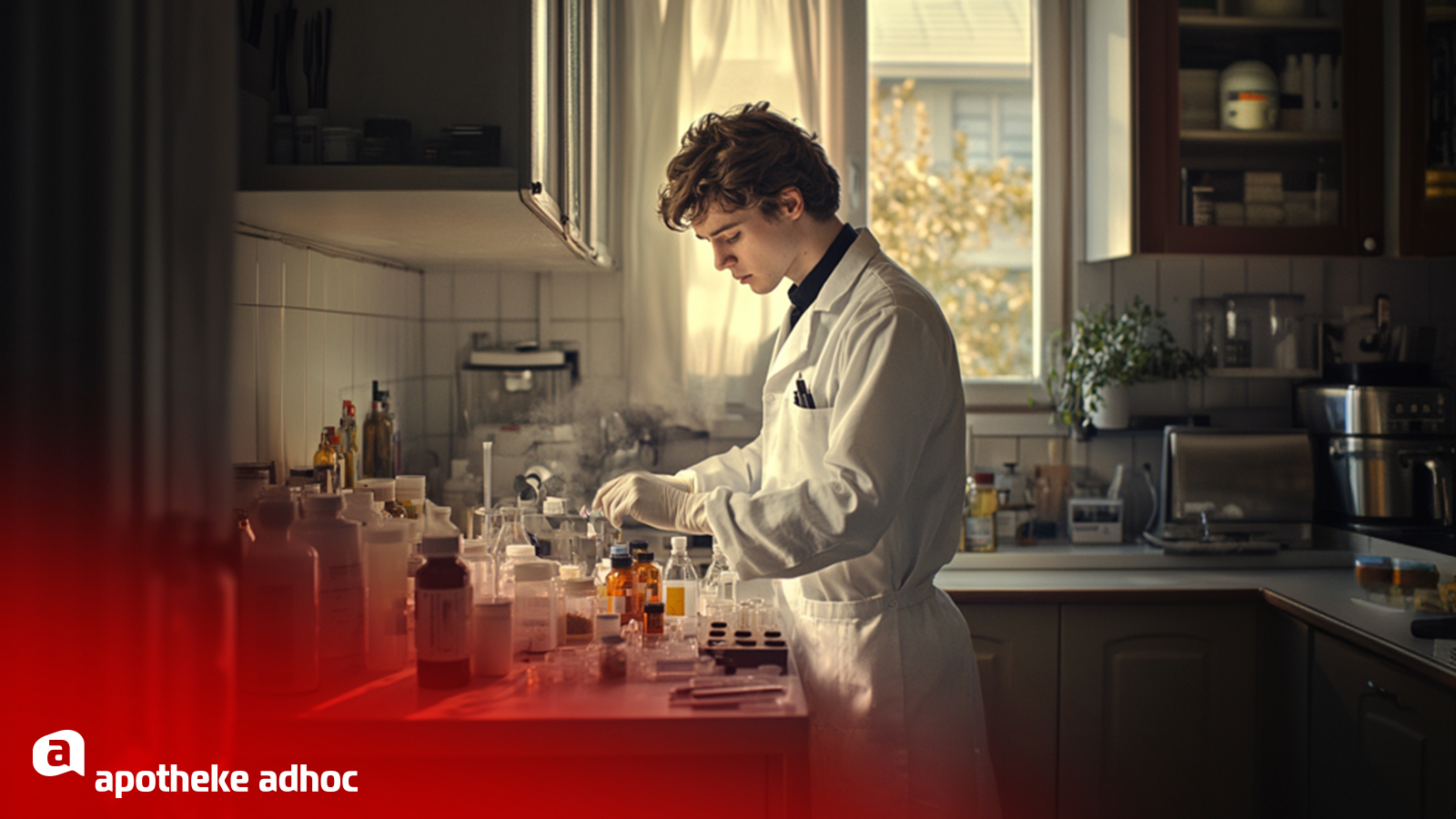 Da eine Renovierung und die Neuanschaffung der Geräte und Materialien dennoch viel zu kostspielig wären, ist nur der Arbeitsplatz der Dozentin ausgestattet. Die turnt ihren Auszubildenden Titrationen, Schmelzpunktbestimmungen und aufwändigere Dünnschichtchromatographien (DC) per Liveübertragung vor. Die Schülerinnen und Schüler absolvieren zu Hause nur das, was tatsächlich als zumutbar erachtet wird – und sich in eine Abo-Box stecken lässt.