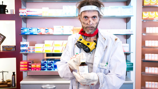 Pff, ist doch ja an einer Ecke eine Apotheke. Denkt sie. Der nächste Standort beherbergt eine Spielothek, nur der schmutzige Abdruck eines längst abhängten A im Mauerwerk verrät, dass hier einst beraten statt gezockt wurde. Wieder eine Straße weiter verkauft der Inhaber vor der Tür noch sein einstiges Inventar. Standgefäß, Mörser und Destillierkolben für 1 Euro. Die Rollstuhlauffahrt als Resterampe. Alles muss weg.