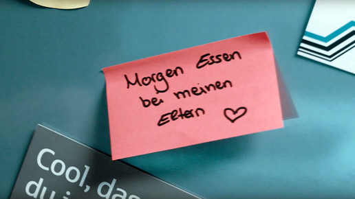Ein Mann holt sich eine Flasche Wasser aus dem Kühlschrank und entdeckt an der Tür ein Post-it mit dem Hinweis „Morgen Essen bei meinen Eltern“. Der Blick auf die Uhr verrät: Es ist kurz nach 20 Uhr. Ihm kommt eine Idee: Wärmflasche füllen, Salbe auf die Brust und Fieberthermometer erwärmen. Bevor seine Frau nach Hause kommt, liegt er bereits „krank“ im Bett.