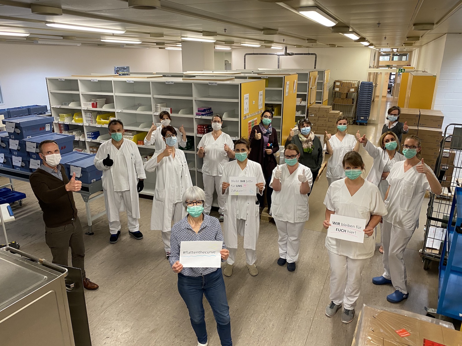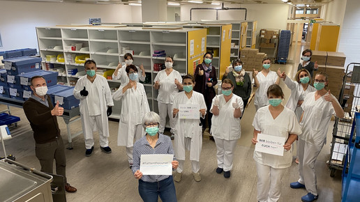 Angesichts der aktuellen Covid-19-Pandemie und der gerade in der Anfangszeit bundesweit angespannten Materialsituation, hat die München Klinik im Bereich der Desinfektionsmittel seit mehreren Wochen auf eine Eigenproduktion durch die Krankenhausapotheke umgestellt, um die Verfügbarkeit sowohl für Mitarbeitende als auch Patienten sicherzustellen. Die Apotheke hat in den letzten Wochen schon über 4000 Liter Desinfektionsmittel selbst hergestellt und in über 6000 Flaschen gefüllt. Auch sterile Arzneimittel zur Injektion stellt die Krankenhausapotheke inzwischen her, um die Versorgungsengpässe vor allem zur Schmerzbehandlung und Dauernarkose der Intensivpatienten zu überbrücken.