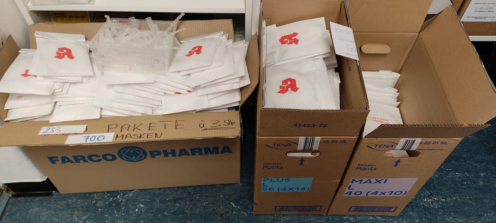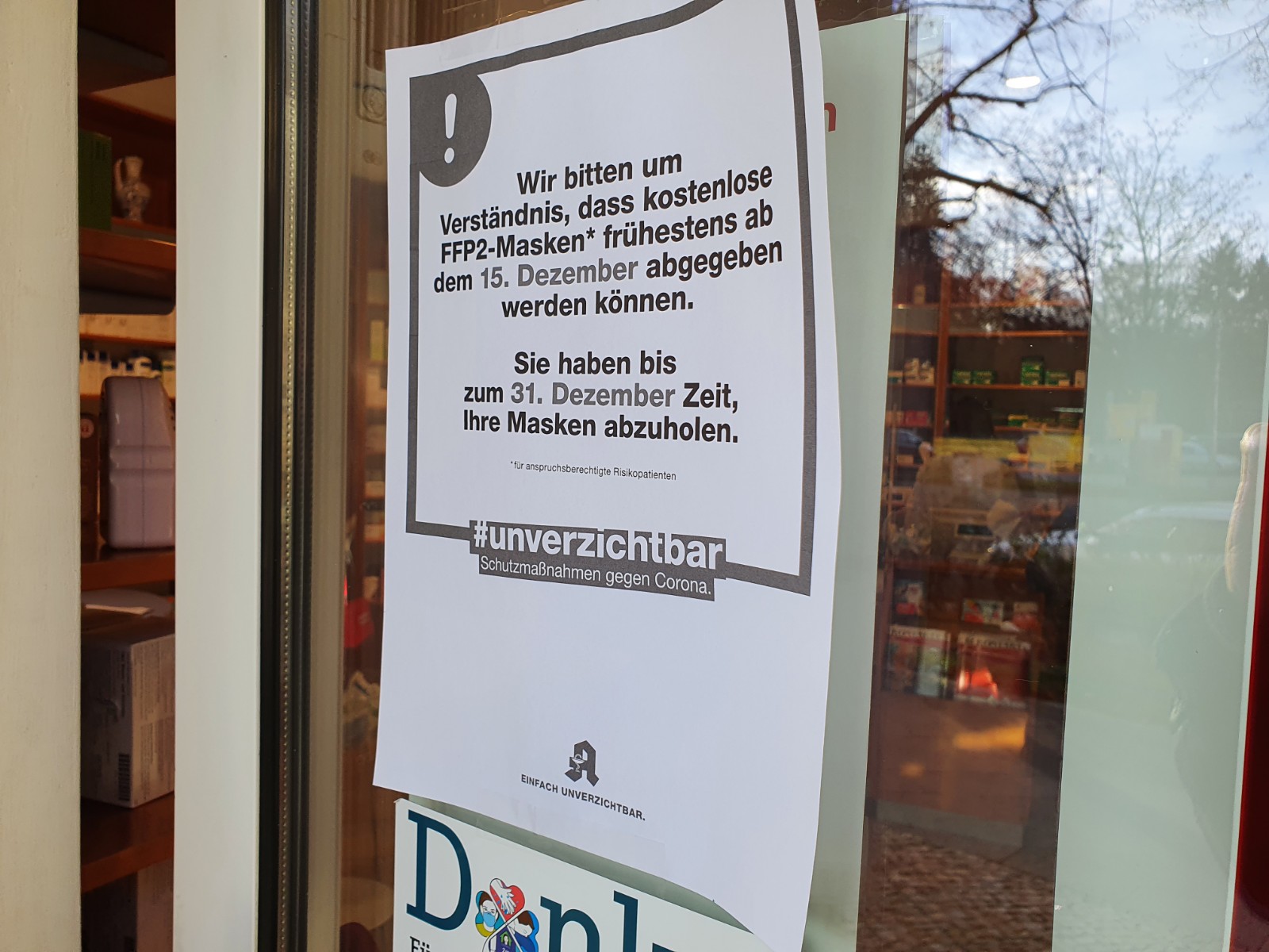 Dass die Aktion trotz der noch nicht veröffentlichten Verordnung noch scheitern könnte, glaubt sie nicht. Also hat sie das Risiko getragen, genügend Masken zu kaufen, und die Apotheke für den erwarteten Ansturm gewappnet. Dazu hat sie, getrennt von den restlichen Kassen, einen eigenen Schalter eingerichtet, an dem unkompliziert und schnell abgegeben werden kann. Für Dienstag hat sie zwei Mitarbeiter ausschließlich für die Masken-Aktion eingeteilt. Denn auch sie rechnet mit einem großen Ansturm: „Das sprengt uns das Normalgeschäft. Wir haben ohnehin gerade schon mehr als sonst und jetzt gehen bundesweit 27 Millionen Menschen los, die kostenlose Maske wollen. Das sind 27 Millionen zusätzliche Kontakte. Wir werden streng darauf achten, dass wir die Hygieneregeln da richtig einhalten, denn es sind ja alles Risikopatienten.“