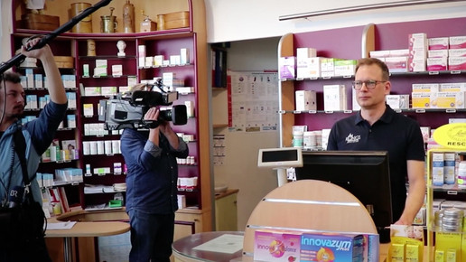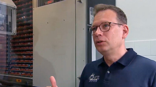 Daher habe er mit seinen vier Apotheken den schon von seinem Vater gestarteten Lieferservice zu einem regionalen Online-Shop weiterentwickelt. Daraufhin zeigt der TV-Beitrag Königs „prall gefülltes Arzneimittellager“ in Gestalt eines modernen Kommissionierers. „Wir können unseren Kunden überall in Deutschland einen schnellen Service direkt an die Haustür bieten, ganz anderes als die großen Versender, die nur einen Standort und die noch die Logistik von einem Tag haben“, so König.