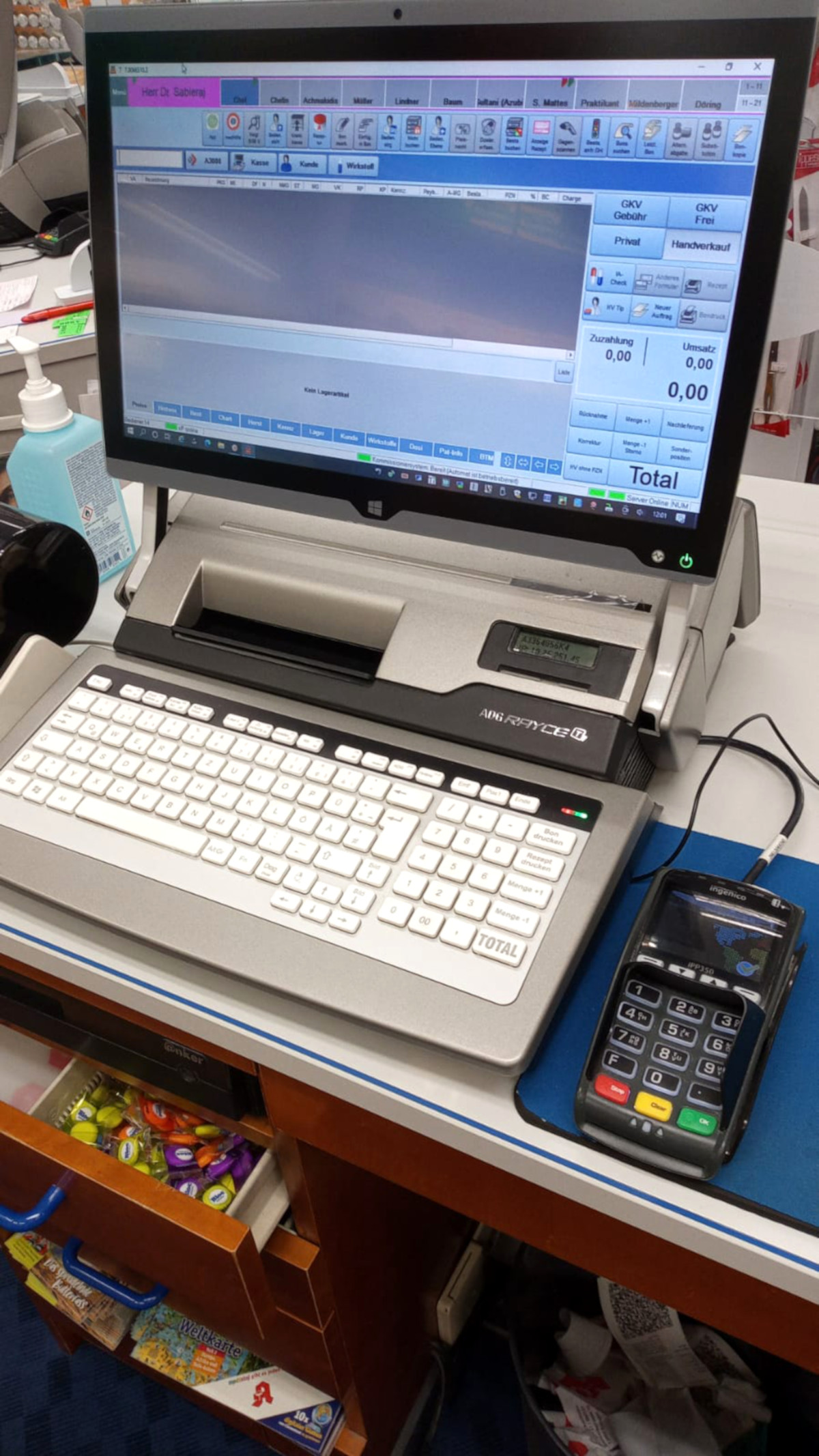 Bei Apotheker Dr. Joachim Sabieraj im baden-württembergischen Eningen fallen drei Lesegeräte an drei Kassen aus. Die Geräte seien an die Hardware der A3000 angeschossen und erhielten die Zahlungsdaten. Zudem übertragen sie diese an das Rechenzentrum. Seine Kundschaft spürt von dem Ausfall nichts: „Wir haben extra für solche Fälle eine Back-up-Lösung. Die bekommen jetzt ein mobiles Gerät gereicht.“