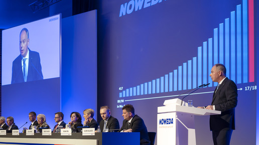 So eng scheint es auch nicht zu sein: Die Mitglieder konnten wie gewohnt die vorgeschlagene Dividende von 11 Prozent auf die Grundanteile und 13,2 Prozent auf die freiwilligen Geschäftsanteile abnicken. Etwa 24 Millionen Euro bringt die Noweda unters Volk. Kuck bemängelte scherzhaft, dass er an dieser Stelle seines Berichts eigentlich eine Pause für Applaus vorgesehen hatte. „Vielleicht ist das zu selbstverständlich geworden, wir sollten vielleicht mal niedrigere Sätze nehmen“, sagte Kuck. Da lachte der Saal beschwichtigend.