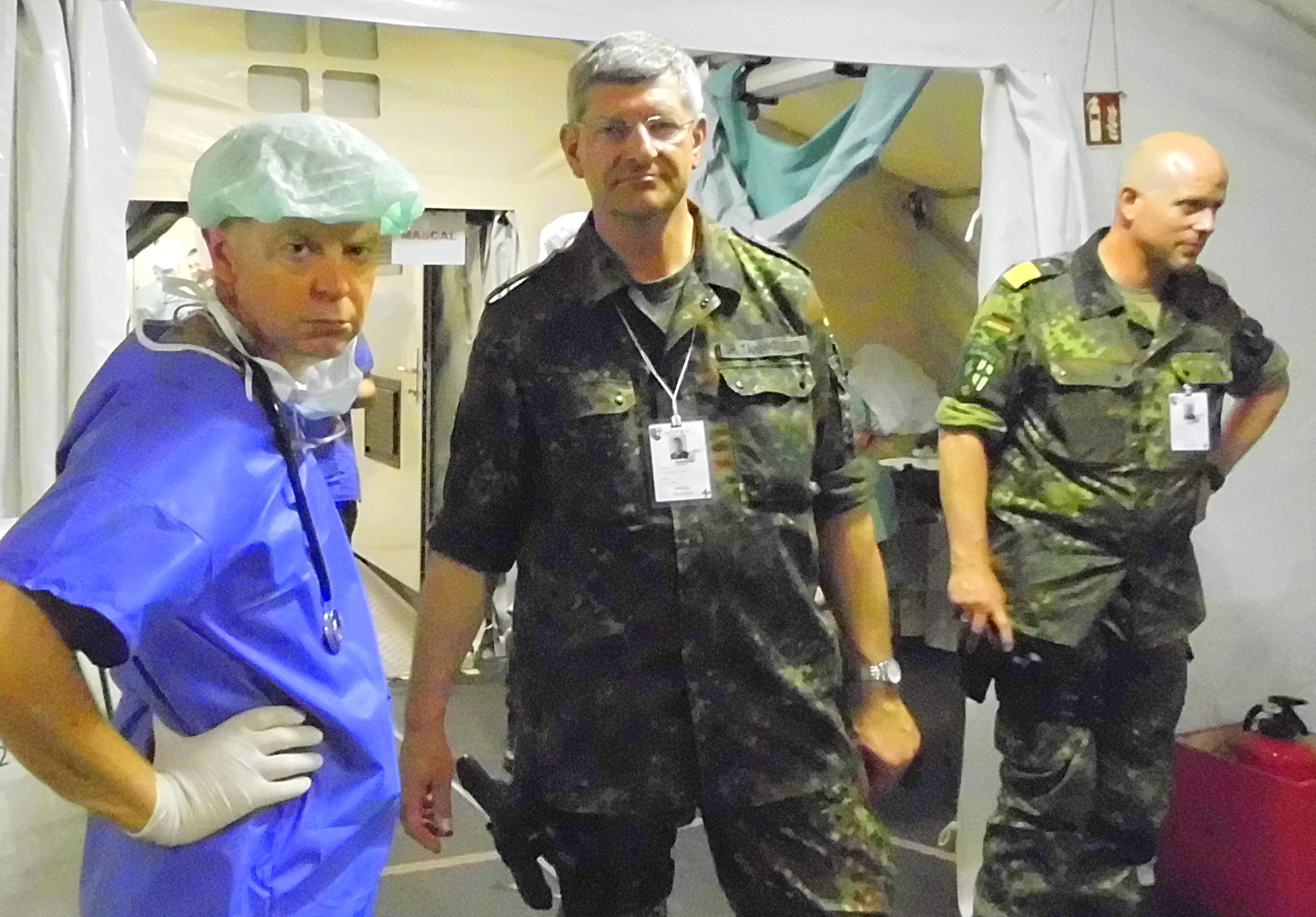 Doch im Schnitt zweimal im Jahr passt es für ihn, dann geht er meist für zwei Wochen auf Wehrübung im gesamten Bundesgebiet, zuletzt die letzten beiden Augustwochen. Da war der 58-Jährige beim Sanitätsregiment 2 im rheinland-pfälzischen Rennerod für den Aufbau und Betrieb eines Feldlazaretts zuständig. „Das besteht im Wesentlichen aus Containern und Zelten, ist aber ausgerüstet wie ein kleines Kreiskrankenhaus.“ Diese Feldlazarette werden beispielsweise bei Auslandseinsätzen oder Naturkatastrophen verwendet.