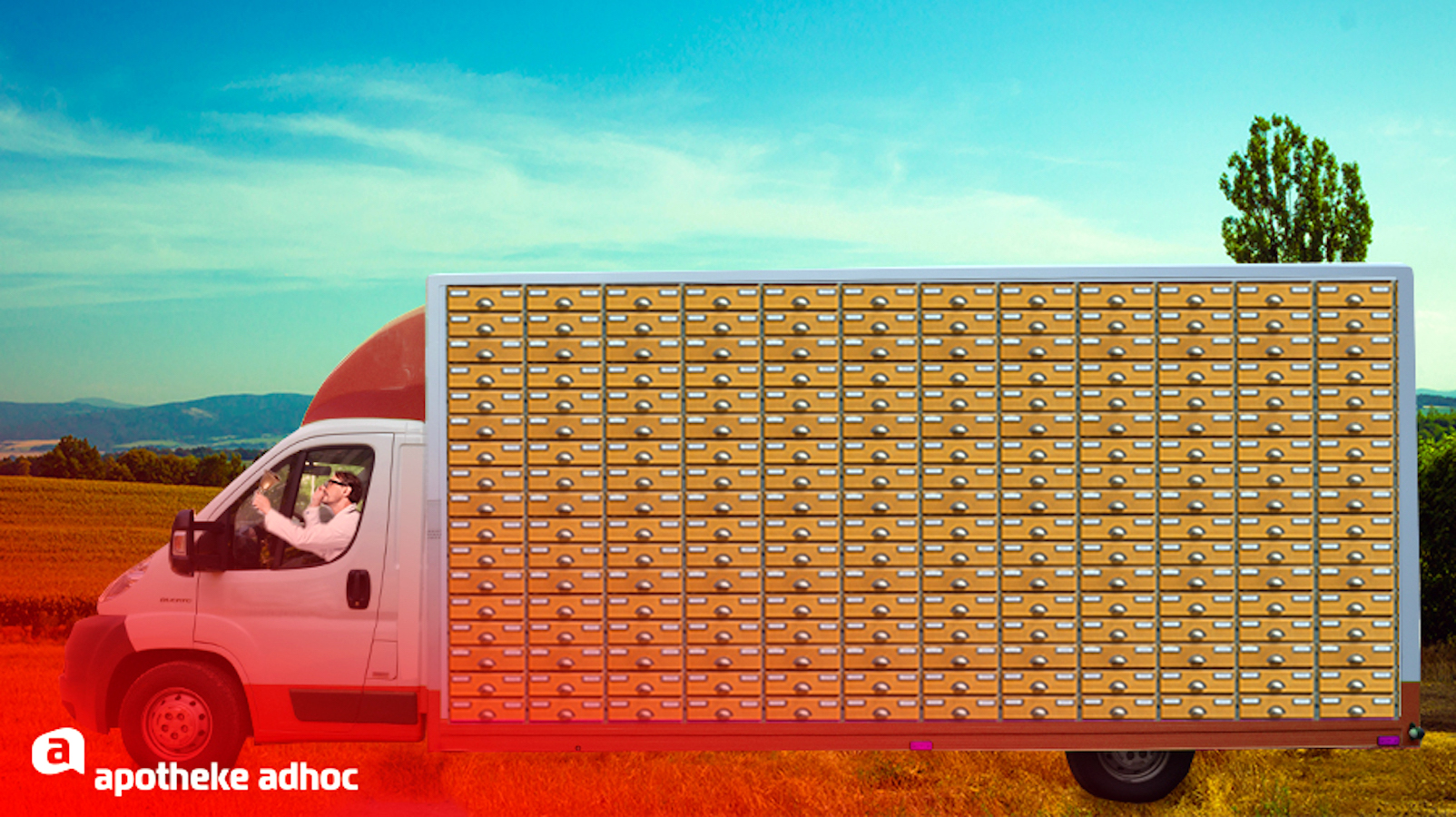 Ein Business Plan war schnell skizziert, die Seed-Finanzierung quasi ein Selbstläufer. „Apolidi ist ein disruptives Challenger-Model, das als Patient-Centricity-Plattform ein integratives Upscaling der kompletten Customer Journey möglich macht.“ Welcher Investor kann da schon Nein sagen? Ein ausrangiertes Backmobil war schnell gefunden, ein Apothekerschrank war bei Ebay ebenfalls günstig zu haben. Für alle Digital Natives noch schnell eine App mit trendigen Zusatzfeatures im Store hochladen, und schon konnte es losgehen.