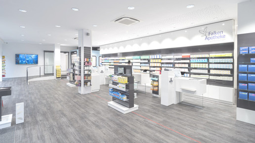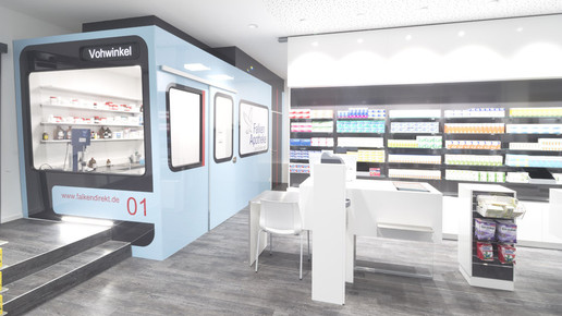 Er selbst studierte neben Pharmazie auch Marketing-Kommunikation und Management in Düsseldorf. Vor fünf Jahren machte er sich mit der ersten Falken-Apotheke in Wuppertal selbstständig, 2016 folgte die zweite. Etwa eine Million Euro habe er pro Betrieb investiert. „Die zweite Apotheke lief von Anfang an super, die Kundenresonanz ist nachhaltig.“ Beide Betriebe hätten einen hohen Wiedererkennungswert, meint Schmitz-Urban. „Sie sind transparent gehalten. Im HV-Bereich will ich jede Reizüberflutung bewusst vermeiden, in der Freiwahl gibt es kaum Ware, 80 bis 90 Prozent werden digital über Touchscreens präsentiert.“ Das unterscheide ihn von 90 Prozent der Mitbewerber. „Die Rezeptur im Design der Wuppertaler Schwebebahn steht in der Offizin, so entsteht ein direkter Bezug zur Stadt und wir zeigen transparent, was wir machen.“ Ein Online-Shop mit regionalem Versand, dazu ein ganztägiger Lieferservice und Abholfächer komplettierten das Angebot.