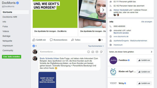 „Der Versandhandel ist auf dem Vormarsch, im Zuge der allgemeinen Digitalisierung hat er ein gewisses Wachstumspotenzial“, sagt Schmitz-Urban. Vor einiger Zeit habe DocMorris mit dem Slogan „Und, wie geht‘s uns morgen?“ geworben. „Doch warum überhaupt bis morgen warten, fiel mir dazu ein. Wenn es mir heute schlecht geht, will ich es auch heute behandelt haben.“