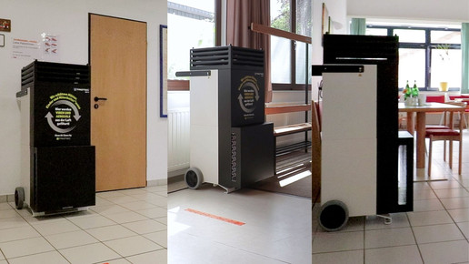 Darüber hinaus stellt er noch einmal den Unterschied zwischen einer Raumluftanlage und einem mobilen Luftreiniger oder Klimaanlage dar. „Der Kunde muss zunächst wissen, welche Art von Anlage oder Gerät er hat. Raumluftanlagen ziehen Außenluft an und geben verbrauchte Luft wieder nach außen ab. Bei Gebäuden, die über eine solche Anlage verfügen sieht beispielsweise spezielle Vorrichtungen auf den Dächern.“ Je nach Modell gibt es Anlagen mit kontrollierter Zuluft oder kontrollierter Abluft. Auch kombinierte Zu- und Abluftanlagen können verbaut werden. Dies sei wichtig, wenn es um das Thema Aufrüstung geht erklärt der wissenschaftliche Mitarbeiter. Diese Anlagen können in den meisten Fällen mit HEPA-Filtern bestückt werden. Für Klimageräte, die lediglich die Luft umwälzen kann, keine Aufrüstung vorgenommen werden.