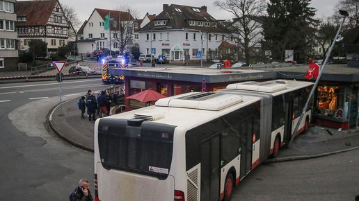 In Marburg kam es am Freitagnachmittag zu einem außergewöhnlichen Unfall: Ein Linienbus krachte um 16.35 Uhr in eine Apotheke. 16 Fahrgäste erlitten leichte Verletzungen, 13 von ihnen kamen nach medizinischer Erstversorgung in umliegende Krankenhäuser, zwei davon verbleiben stationär. Alle Verletzten waren ansprechbar, für keinen besteht Lebensgefahr. Die Apothekenkunden und -mitarbeiter kamen mit einem Schrecken davon.