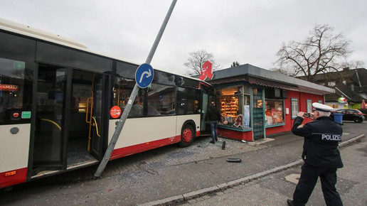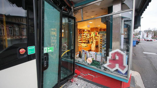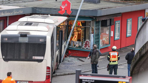 Der Linienbus stand nach ersten Erkenntnissen zunächst an der Bushaltestelle am Südbahnhof und setzte sich dann in Bewegung. Aus bislang nicht bekannten Gründen kam der Bus nach dem Anfahren und einer zurückgelegten Strecke von etwa 30 Metern von der Straße ab und fuhr mit der Front in die Schaufenster einer Apotheke.