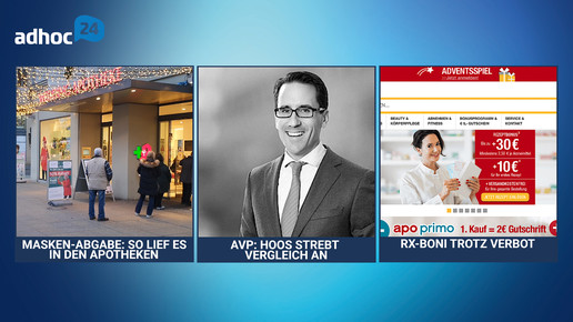 Die Apotheken haben den ersten Tag der Gratis-Masken-Abgabe mehr oder weniger überstanden. Heute fand die Gläubigerversammlung zu AvP in Düsseldorf statt. Und Apo-Discounter wird auch nach Inkrafttreten des VOASG für Rx-Boni. Diese und weitere wichtige Themen des Tages bei adhoc24.