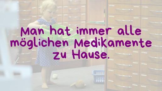 Zu den unbestreitbaren Vorteilen zählt, dass man immer alle möglichen Medikamente zu Hause hat. Wer krank ist, wird sofort versorgt oder man bekommt die richtigen Medikamente mit in die Schule oder zur Arbeit. Und es ist auf jeden Fall beruhigend zu wissen, dass es jemanden in der Familie die richtige Dosierung kennt. Und zwar sehr genau: Wenn ich als Kind eine Erkältung hatte, wurde ich umfassend versorgt – inklusive der genauen Einnahmezeiten.