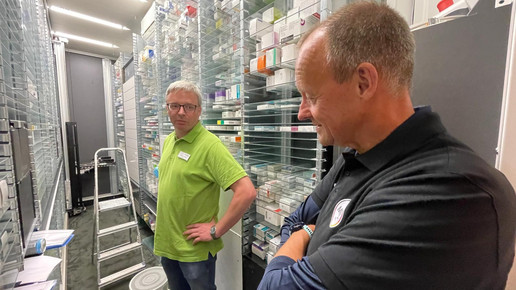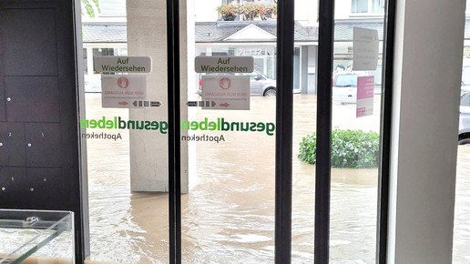 Willeke konnte gestern wieder eröffnen, nachdem seine Offizin von der Überschwemmung hart getroffen wurde. Der Dauerregen ließ die Straße vor der Apotheke zu einem Fluss anschwellen und das Wasser drang in die komplette Apotheke. Die Offizin stand unter Wasser, seinen Kommissionierer hat es erwischt. Der Inhaber ist dankbar: Die Aufräumarbeiten hätte er ohne die fleißigen Helfer nie bewältigen können.