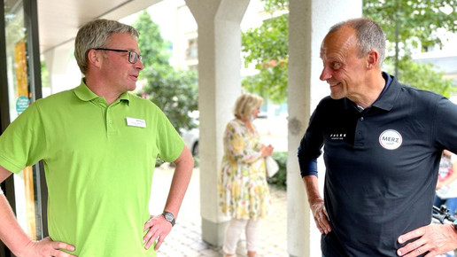 Merz kandidiert im Wahlkreis Hochsauerland für die Bundestagswahl am 26. September. Er ist spontan nach kurzer Ankündigung in die Apotheke gekommen. „Es war ein gutes Gespräch, nicht nur zur aktuellen Hochwasserlage“, sagt Willeke. Weitere Themen seien Apotheke und etwa die Logistik gewesen. Der frühere Unionsfraktionschef ist momentan im Rahmen seiner „Sommerradeltour“ in der Region unterwegs.