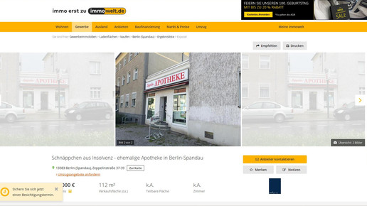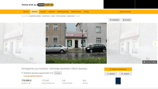 Derzeit gibt es auf dem Berliner Immobilienmarkt ein ungewöhnliches Angebot. Für 176.000 Euro kann man in der Zeppelinstraße 37-39 in Spandau ein Ladenlokal kaufen. Bei den zwischen zwei Wohnblöcken eingeklemmten Geschäftsräumen handelt es sich um die frühere Zeppelin-Apotheke. Der ehemalige Inhaber Yaser Alshrafi hatte sie im Oktober aufgeben müssen, ebenso die Mauritius-Apotheke in Neukölln.