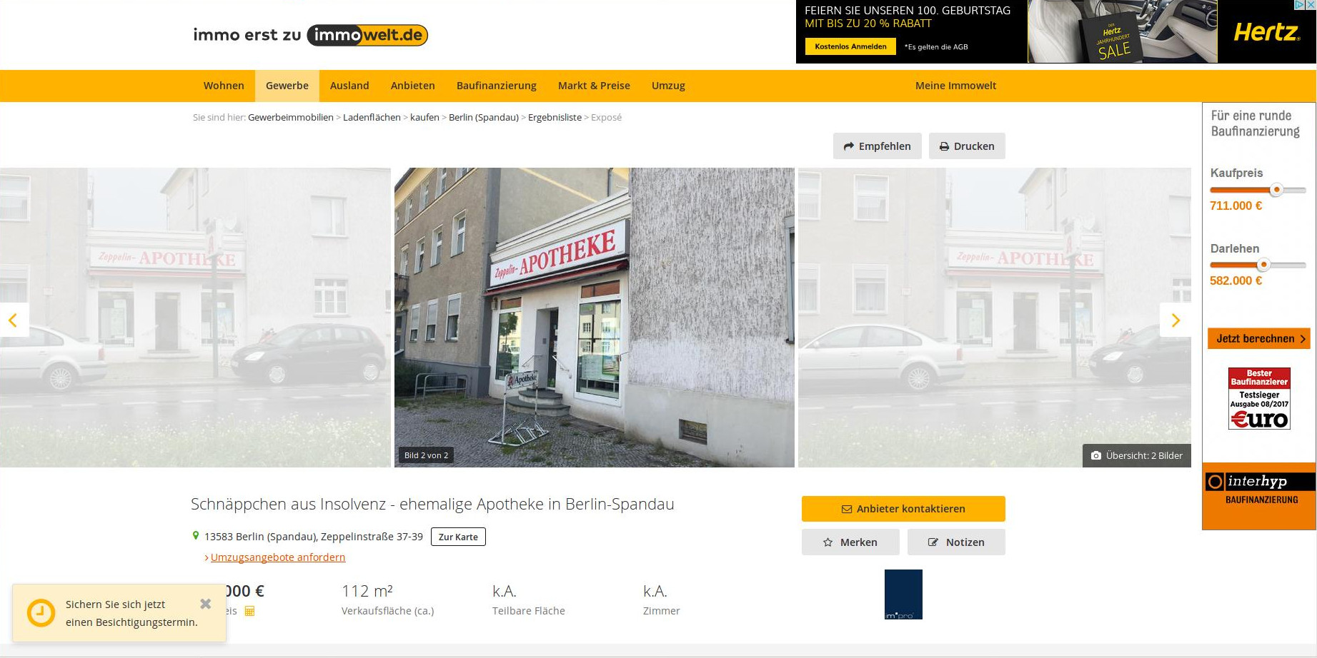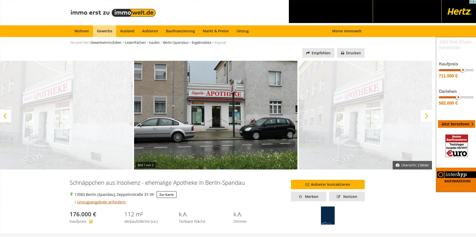 Derzeit gibt es auf dem Berliner Immobilienmarkt ein ungewöhnliches Angebot. Für 176.000 Euro kann man in der Zeppelinstraße 37-39 in Spandau ein Ladenlokal kaufen. Bei den zwischen zwei Wohnblöcken eingeklemmten Geschäftsräumen handelt es sich um die frühere Zeppelin-Apotheke. Der ehemalige Inhaber Yaser Alshrafi hatte sie im Oktober aufgeben müssen, ebenso die Mauritius-Apotheke in Neukölln.