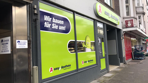 Und um eine waschechte Neueröffnung handelt es sich ja auch nicht. Denn bis vor rund einem Jahr gab es an diesem Standort bereits eine Easy-Apotheke: Im August 2015 hatte die Apotheke im Düsseldorfer Nobelstadtteil Oberkassel mit viel Trommelwirbel geöffnet – denn es war die 100. Apotheke der Kooperation. Zur großen Party im Club „Ufer 8“ waren Kooperations- und Geschäftspartner geladen. Doch nach dreieinhalb Jahren schon wieder Schluss: Seit dem 11. Dezember 2018 ist die Apotheke geschlossen.