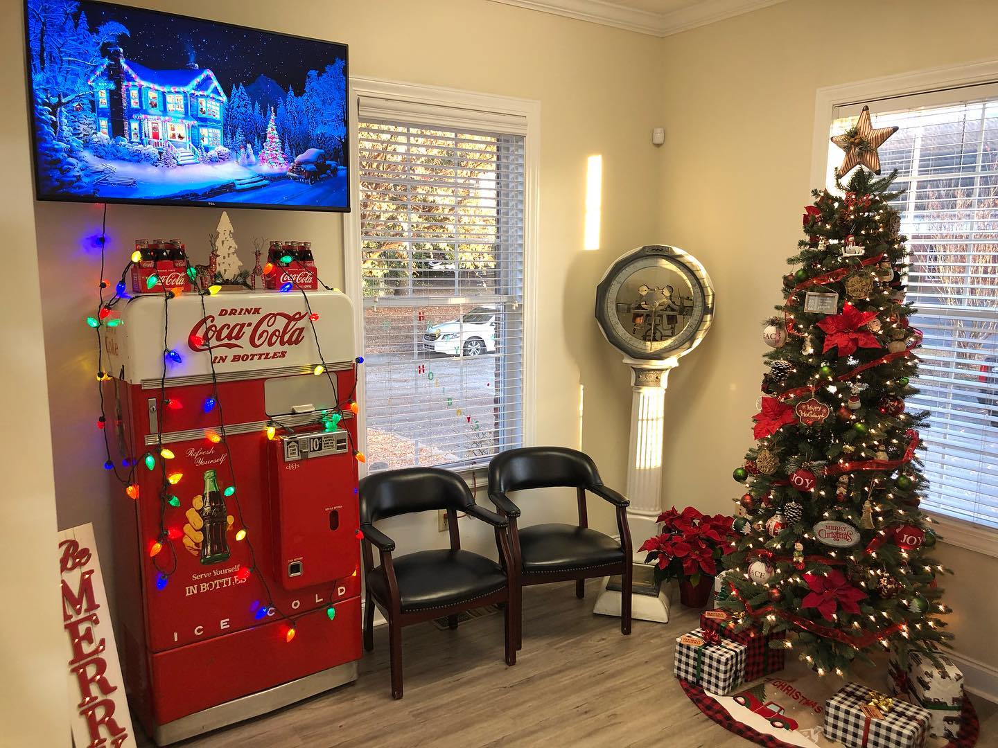 Die kleine Apotheke von Christmas ist weihnachtlich geschmückt. „Wir dekorieren viel, für den Platz den wir haben.“ Ein antiker Coca-Cola-Automat, eine historische Wage und ein Weihnachtsbaum mit zahlreichen Lichterketten schmücken den Wartebereich in der Apotheke. „Hinter den Kulissen geht es bei uns modern und hochtechnisiert zu“, sagt Christmas. Der Pharmazeut legt beispielsweise Wert auf eine eigene App, um direkten Kontakt zu den Kund:innen zu haben.
