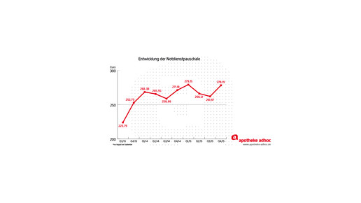 Ein Notdienst war im vierten Quartal 2015 wieder etwas mehr wert: 278,19 Euro erhielten die Apotheker pro Dienst – der zweithöchste Wert der vergangenen zwei Jahre. Das meldet der Nacht- und Notdienstfonds (NNF). Im Vergleich zum Vorjahr entspricht das einem Plus von 2,6 Prozent und im Vergleich zum dritten Quartal sogar 6,2 Prozent mehr. Insgesamt wurden im vergangenen Jahr rund 113 Millionen Euro an die Apotheker ausgezahlt.
