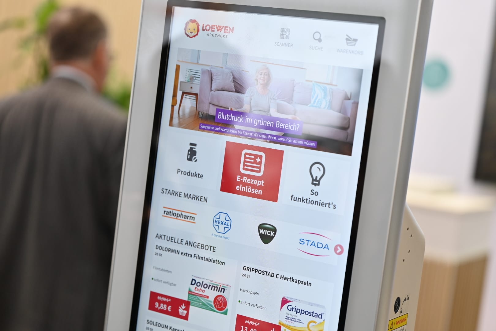 Für Palm macht das Unternehmen eine Ausnahme. Der Apotheker hatte das Angebot auf der Expopharm gesehen und sich an den Hersteller gerichtet. Das Thema sei heikel, da der Markt gerade in einem Umbruch und „feinfühlig“ sei. Wichtig war dem Hersteller, dass das Terminal eben nicht in einem Supermarkt im Mass Market montiert werde: „Es steht im Rathaus auf neutralem Boden.“