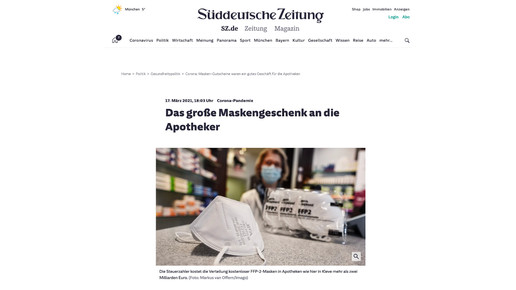 Von Anfang an hatte es kritische Stimmen gegeben, doch jetzt fahren WDR, NDR und Süddeutsche Zeitung (SZ) ganz große Geschütze auf: Vom „große Maskengeschenk an die Apotheker“ ist die Rede und davon, dass sich die Pharmazeuten dank Gesundheitsminister Jens Spahn (CDU) „dumm und dämlich verdient“ haben.