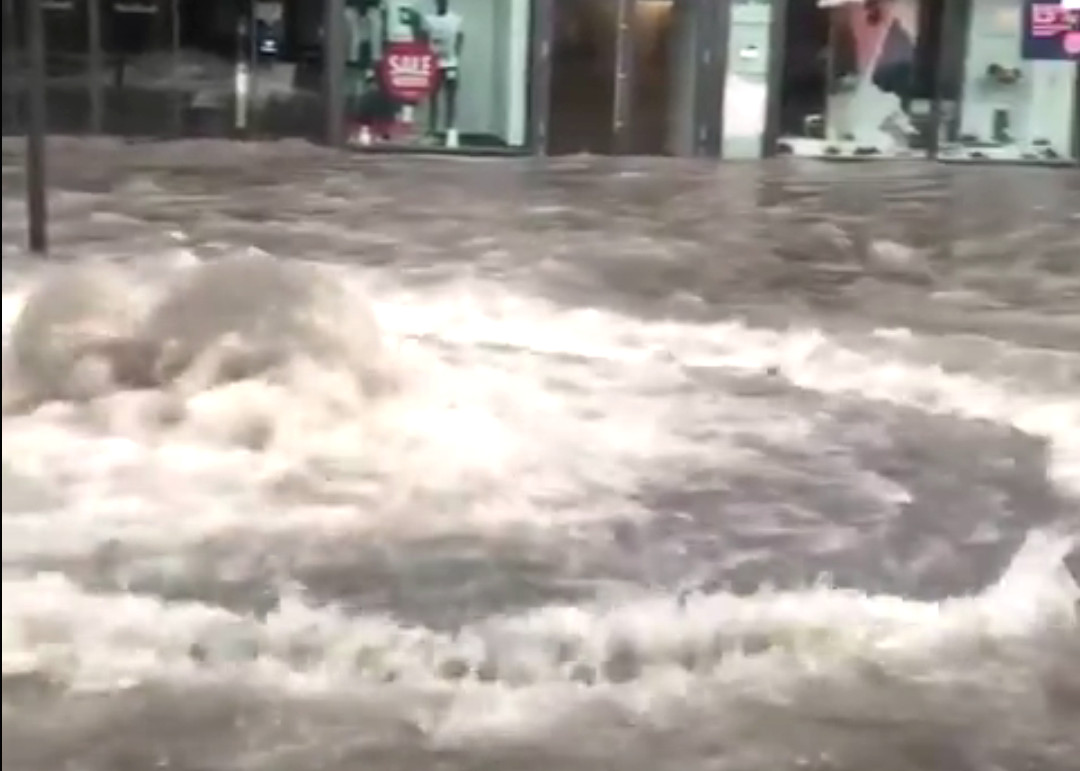 „Am frühen Dienstagnachmittag wurde der Himmel plötzlich rabenschwarz, so als ob wir schon 22 Uhr hätten“, erinnert sich der Apotheker, der seinen Namen nicht genannt haben will. „Dann setzte ein gewaltiger Regen- und Hagelschauer ein. Innerhalb von zehn Minuten standen Straße und Bürgersteig unter Wasser.“