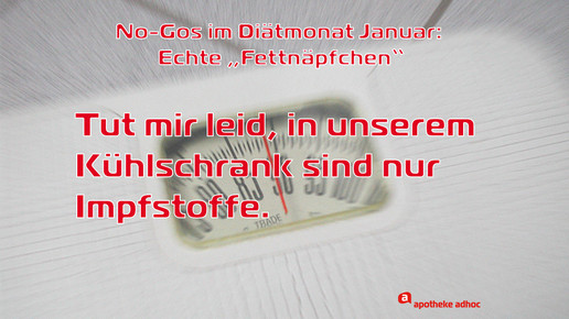 Viele Kunden fragen zum Jahresbeginn nach Diätmitteln und Ernährungstipps. Da ist besonderes Fingerspitzengefühl in der Beratung gefragt. Ebenfalls zu beachten: Nicht jeder Kunde mit Übergewicht hat sich vorgenommen, abzunehmen. Also Vorsicht mit frechen Sprüchen und nett gemeinten Witzen. Eine Auswahl an Fettnäpfchen, die Sie besser auslassen.
