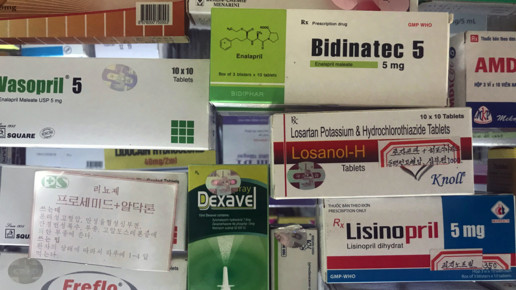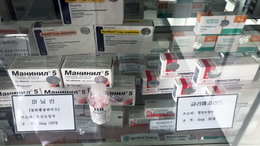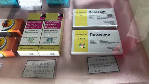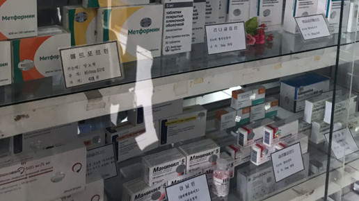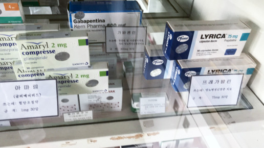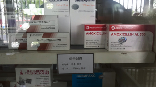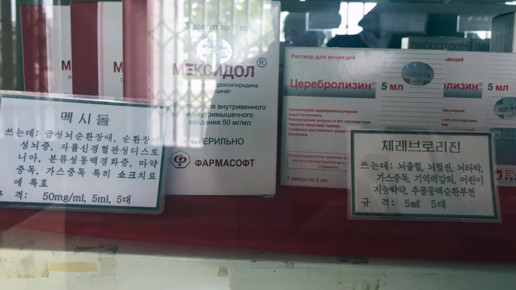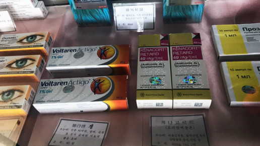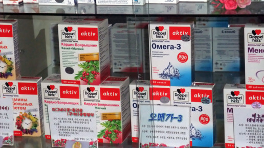 In den Apothekenvitrinen befinden sich zahlreiche Produkte aus Übersee: Generika von Biomo, Aliud und Ratiopharm aus Deutschland, Voltaren aus Frankreich, verschreibungspflichtige Produkte von Eli Lilly, Sandoz, Novo Nordisk sowie Nahrungsergänzungsmittel von Doppelherz aus Russland. Auch die dm-Eigenmarke „Das gesunde Plus“ taucht auf. Zudem gibt es eine reine Ginseng-Abteilung. „Die meisten Apotheken sind nur für den 08/15-Bedarf ausgelegt. Die Nordkoreaner werden über Kliniken mit Arzneimitteln versorgt“, so Schmitz.